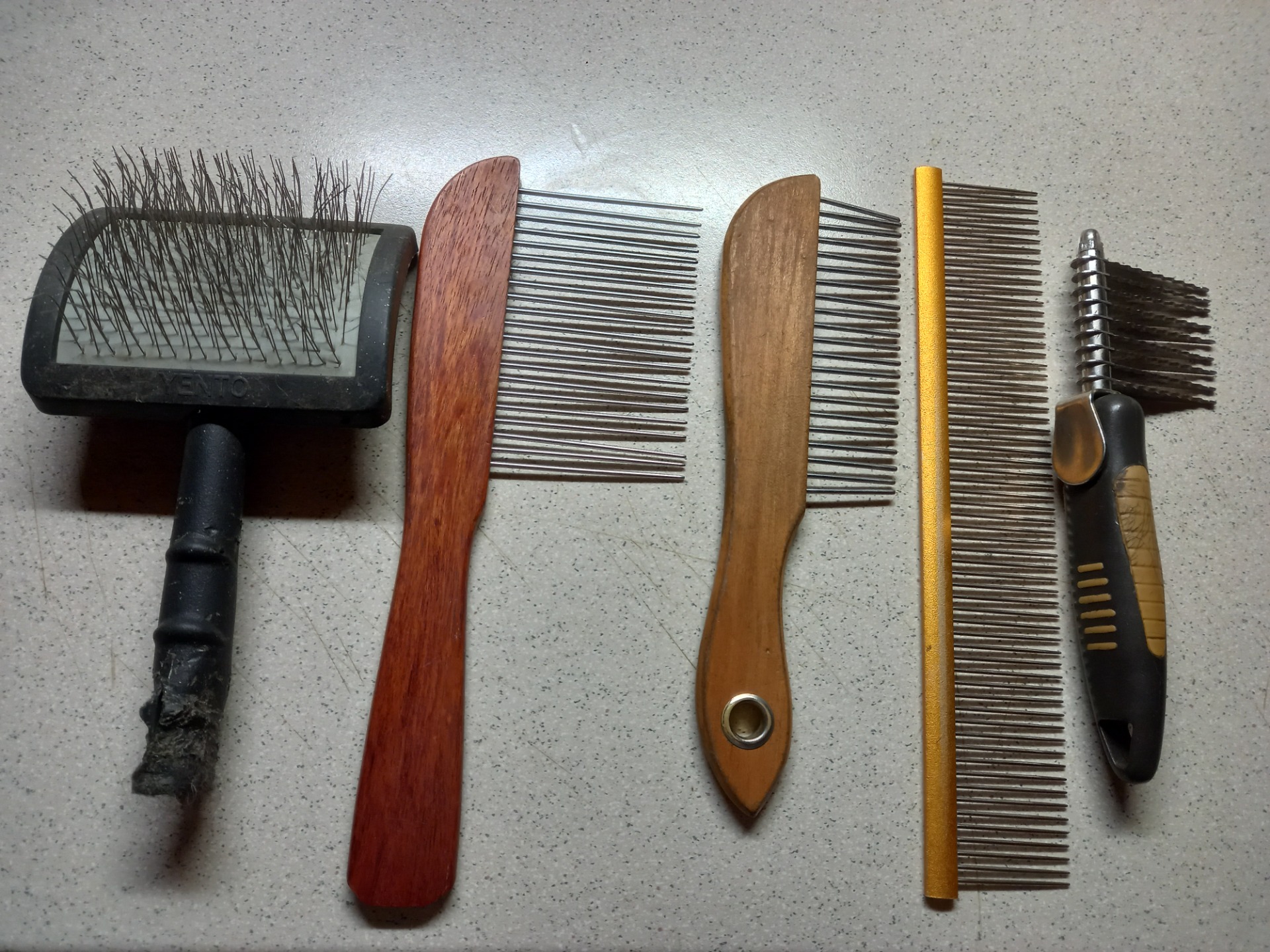 Česání není tak jednoduché, jak se může na první pohled zdát. Musíme mít kvalitní hřeben a kartáč. Většina pejsků česání moc rádi nemají, ale bohužel je to nutnost. Pokud máme pejska s delší srstí česání se nevyhnete, tak je nejlepší začít hned od štěňátka. Štěňátko hned od malička učíme při česání stát na stole, jelikož to bude pro Vás do budoucna jednodušší. Nejprve srst kartáčujeme po i proti směru růstu. Srst nadzvedáváme a kartáčujeme po vrstvách, abychom se dostali až ke kůži. Když máme psa pořádně rozčesaného kartáčem, pokračujeme hřebenem. Zase češeme po i proti směru růstu srsti. Hřeben by měl hladce projíždět, aniž by se zasekával o srst. Pokud se to stane, podržíme si chuchvalec srsti v prstech a opatrně rozčešeme prořezávačem. Zvlášť si dáme pozor na místa, kde se srst plstnatí nejvíce (např. pod předními končetinami, za ušima, vousy). Při česání dbáme na to abychom pejska nečesali moc hrubě a kartáčem, nebo hřebenem neporanili. Česat bychom měli alespoň 1x týdně, nebo i častěji podle potřeby a kvality srsti. Před koupáním je rozčesání srsti nutné.