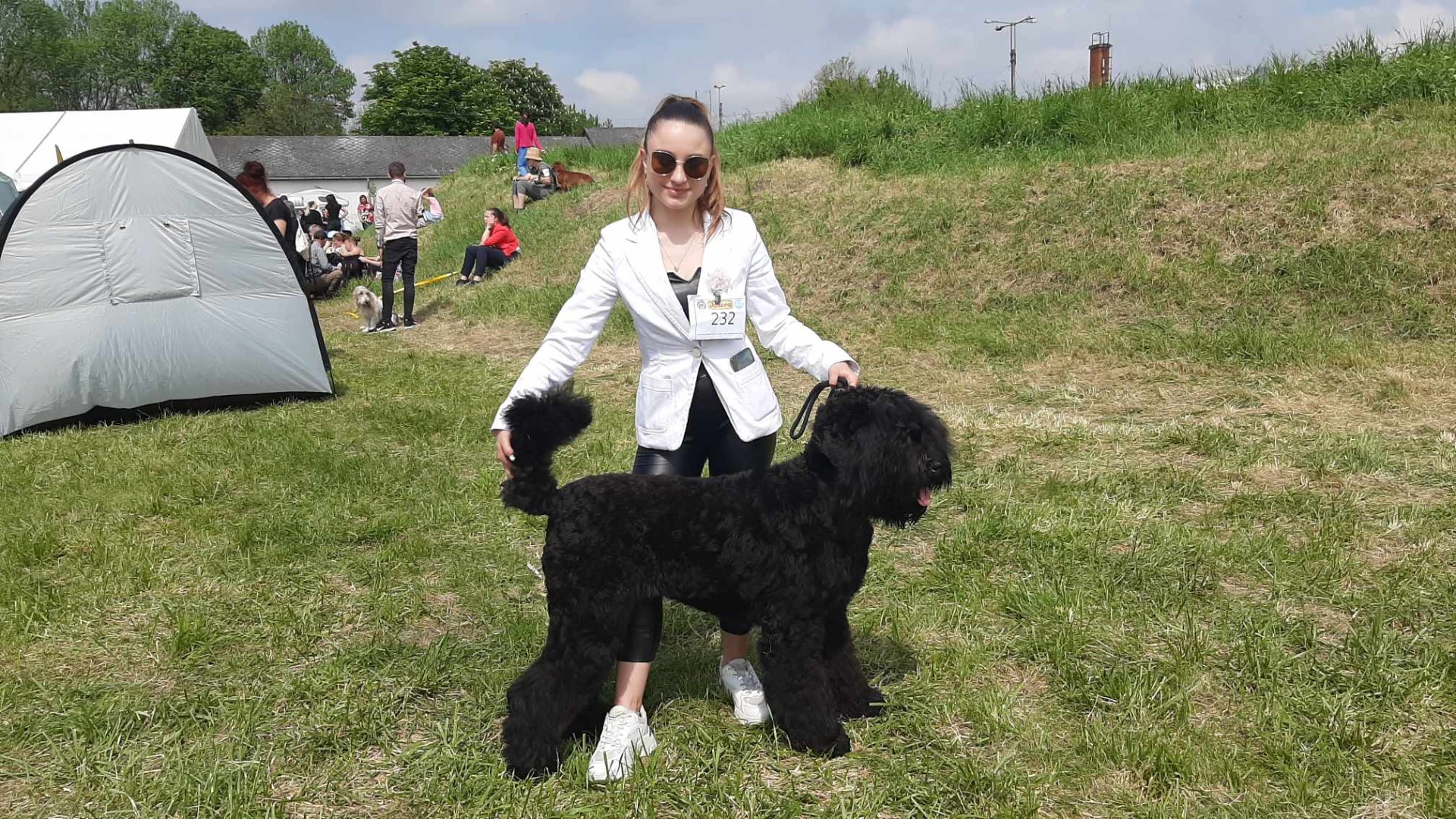 Na mezinárodních výstavách uvnitř hal je v oblibě oděv společenského rázu. Pánové chodí v oblecích nebo kalhotách a košili. Dámy zpravidla předvádějí v kostýmku či jednoduchých šatech. To platí zejména u společenských plemen. Svým oblečením navíc dáváte najevo i určitou úctu k rozhodčímu, který zpravidla také posuzuje v kostýmu nebo obleku.... k tomu balerínky, hezké tenisky atd...